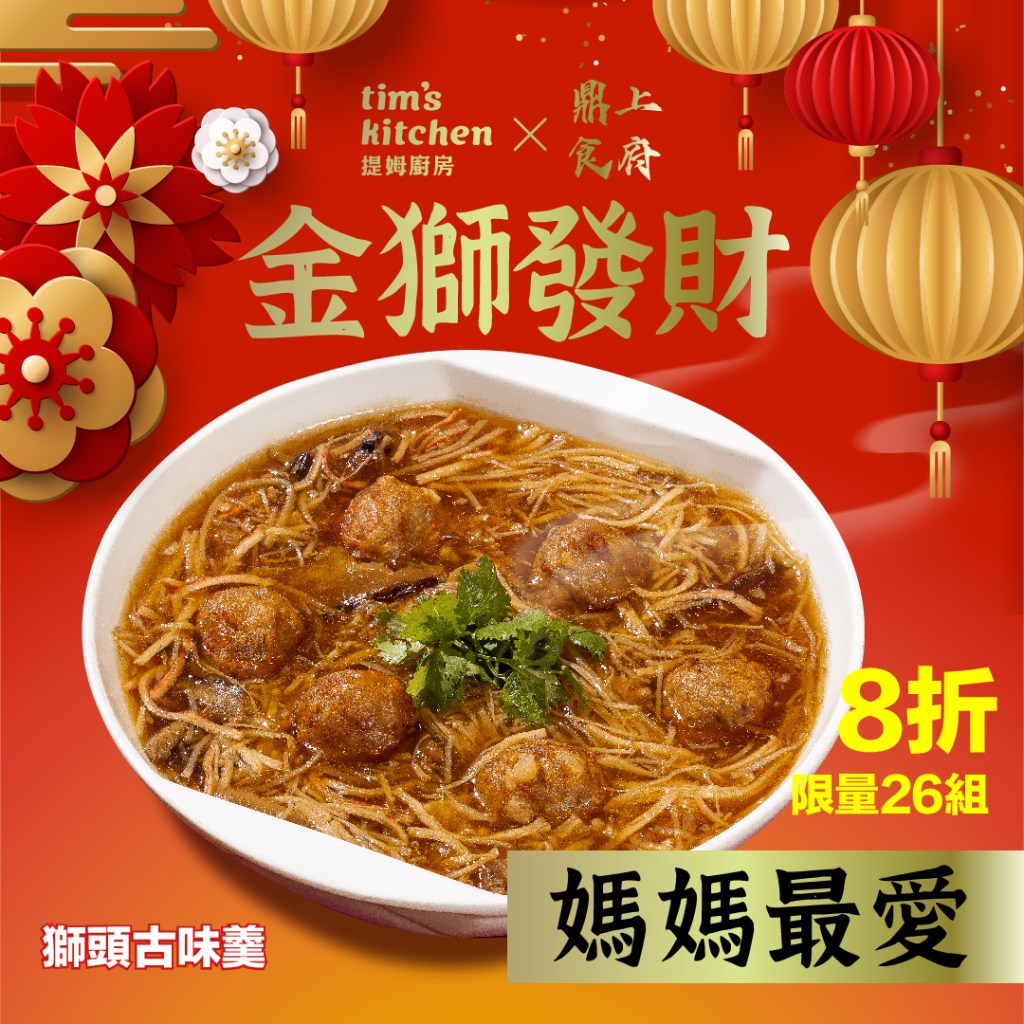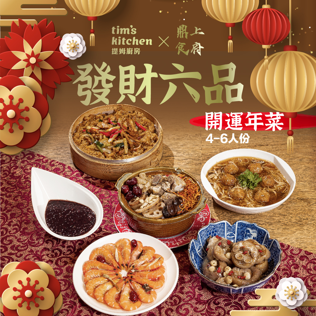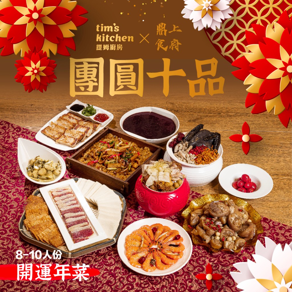 台灣傳統桌菜的美味,是許多人逢年過節的懷念滋味,新年前夕各大飯店與餐廳必爭之地-年菜組合,期間讓餐飲市場更加活絡,由提姆廚房與鼎上食府所推出的聯名年菜,結合雙方品牌的熱門商品,有象徵十全十美的十品年菜,也有為小家庭規劃的六品組合。